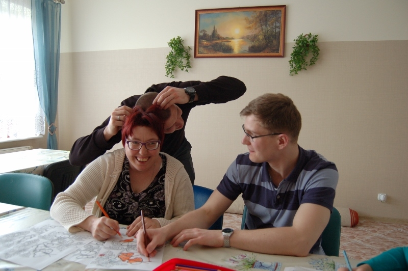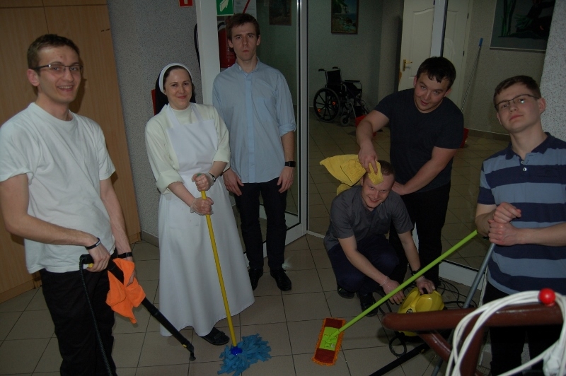 Nasze Mieszkanki przywitały ich z wielką radością. Podczas spotkania nie zabrakło wspólnych rozmów, wykonywania palm na Niedzielę Palmową oraz pracy porządkowej w naszym domu.