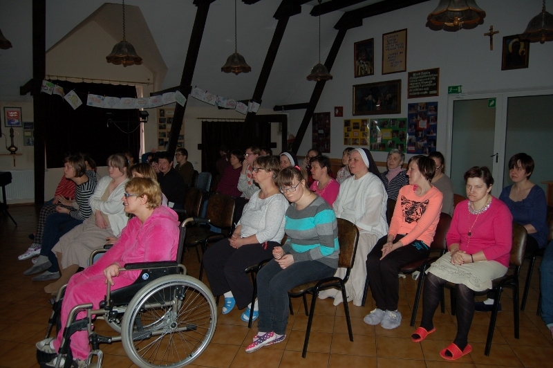 W dniu 29 marca 2017 roku odwiedzili nas Pracownicy z Domu Kultury z Rogowa wraz z nowo utworzoną grupą teatralną „Przebudzenie”. Przedstawienie, które zaprezentowali pokazywało jak wielkim szacunkiem powinniśmy otaczać osoby starsze, samotne i chore. Mimo poważnego tematu spektakl wywołał ogromna radość wśród naszych mieszkańców. Po przedstawieniu Panie z grupy teatralnej obejrzały film o naszym domu.